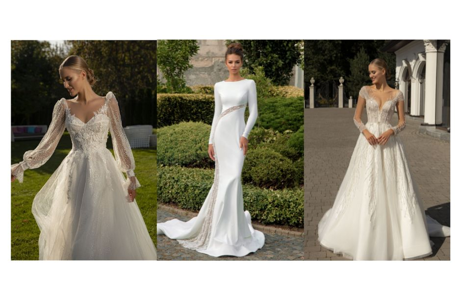 Pro podzim a zimu jsou ideální šaty s dlouhým rukávem. Vrchní část může být zdobená krajkou, výšivkou nebo průhledným tylem, zatímco sukně zůstává jednoduchá a hladká – v áčkovém střihu nebo jemně rozšířená.